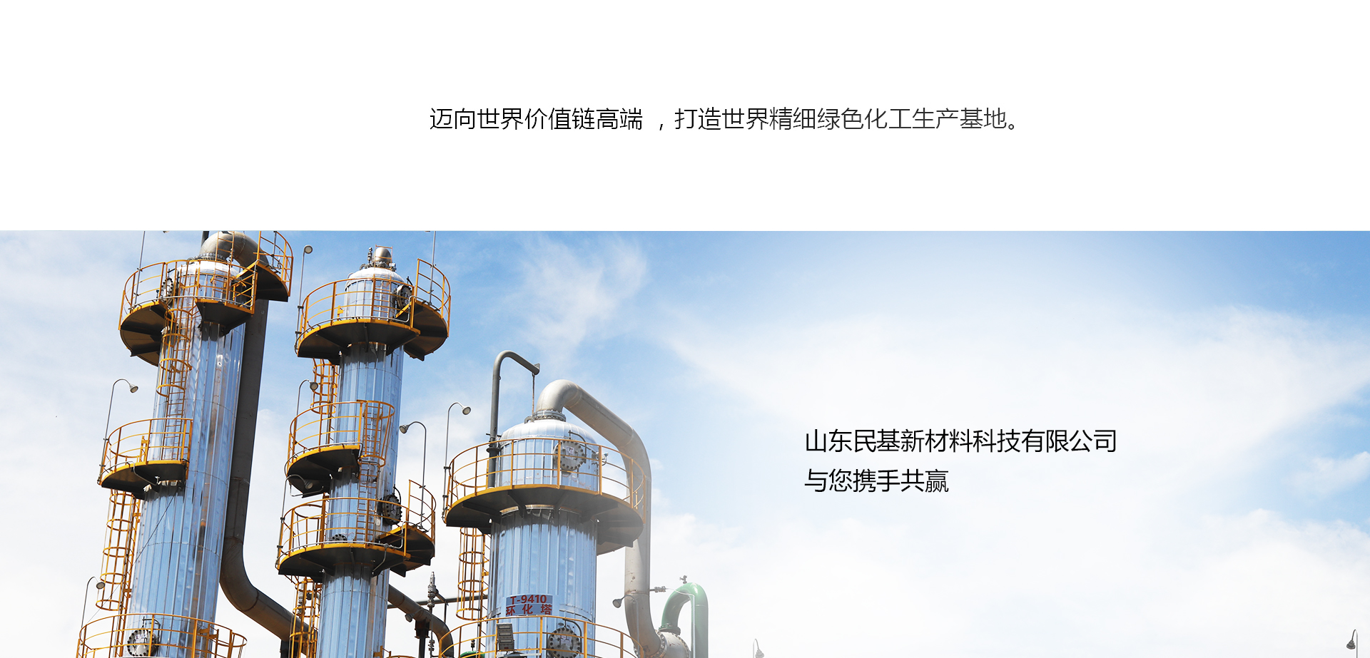 山東民基新材料科技有限公司成立于2008年5月,占地面積20萬平方米,注冊資本1.1億元,是山東省高新技術(shù)企業(yè)、山東省雙體系標桿企業(yè)、山東省氯乙酸行業(yè)安全操作規(guī)程起草單位、山東省瞪羚企業(yè)、山東省“專精特新”中小企業(yè)、山東省“中小企業(yè)隱形冠軍”,獲山東省“富民興魯勞動獎狀”、“振興淄博勞動獎狀”、“淄博市勞動關系和諧企業(yè)”、“淄博市示范誠信企業(yè)”等榮譽20余項。擁有省級和市級“一企一技術(shù)”研發(fā)中心、淄博市工程研究中心,已申報、擁有專利30余項。 公司主要產(chǎn)品:氯乙酸、環(huán)氧氯丙烷、三甲基乙酸、三甲基乙酰氯、氯代特戊酰氯、濃硫酸、發(fā)煙硫酸、液體二氧化硫等,組成了“氯乙酸—環(huán)氧氯丙烷”、“三甲基乙酸—三甲基乙酰氯—氯代特戊酰氯”兩條綠色循環(huán)產(chǎn)品鏈,其中氯乙酸單套裝置產(chǎn)能全球第一。產(chǎn)品廣泛用于醫(yī)藥、農(nóng)藥、染料、膠粘劑等行業(yè),深受國內(nèi)外市場青睞。公司擁有自營出口權(quán),通過了三體系認證,獲頒歐盟3A信用評估證書、國內(nèi)3A級信用企業(yè)證書。 建基筑業(yè)十余年,公司始終踐行“創(chuàng)新驅(qū)動、高端智能、高質(zhì)高效、綠色循環(huán)”發(fā)展理念,集中資源,定向發(fā)力,堅守主業(yè),聚焦項目,聚力創(chuàng)新,致力于研發(fā)構(gòu)建“投入-產(chǎn)出-資源循環(huán)利用”的安全環(huán)保綠色制造體系,打造了新舊動能轉(zhuǎn)換的“民基樣板”。